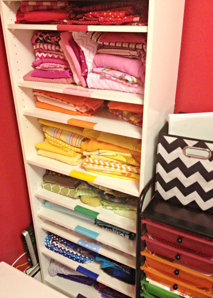 After a quick coat of white paint, we screwed two scrap pieces of wood into the studs — one at the top, one at the bottom — and then screwed the pegboard into the scrap wood. I arranged everything neatly on hooks, and had my handy husband drill holes in some of my plastic containers so I could hang them with strips of wire. It’s been one of those life-changing projects, truly, because I’m no longer losing my gridded ruler (and cursing) every five minutes during a sewing project.