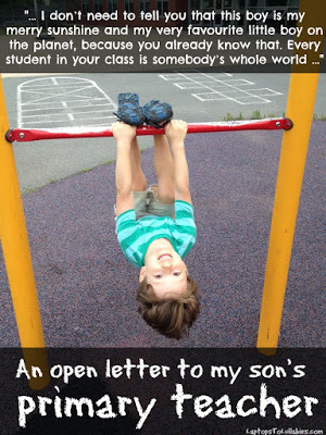In between phone calls and deadlines, I’ll picture my sweet boy sitting in your classroom and shyly raising his hand. I’ll hope he’s remembering his manners and that he wipes his mouth with a napkin after lunch. I’ll know that you’re making sure he’s having a fun first day at his big new school, and you’ll be the one to safely lead him back to the bus when the bell rings.