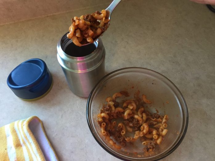 The thermos has been getting plenty of use over the last two weeks, as I find ways to make him “dinner” at 6:30 a.m. so he can take it to school with him. Did I mention that he refuses to eat canned soup or Chef Boyardee delights, which are pretty much the only things I ever got in my thermos as a child?