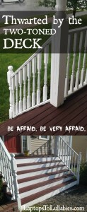 Halloween is coming up, so this weekend I shared my version of a DIY horror story: the two-toned deck. Like all horror stories, it starts off cheerfully, but then there’s a lot of screaming and crying and it ends on kind of a dark note.