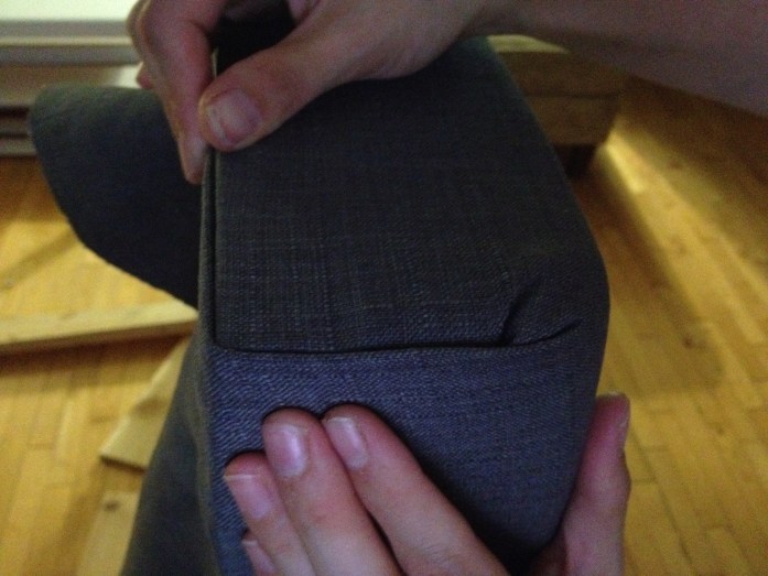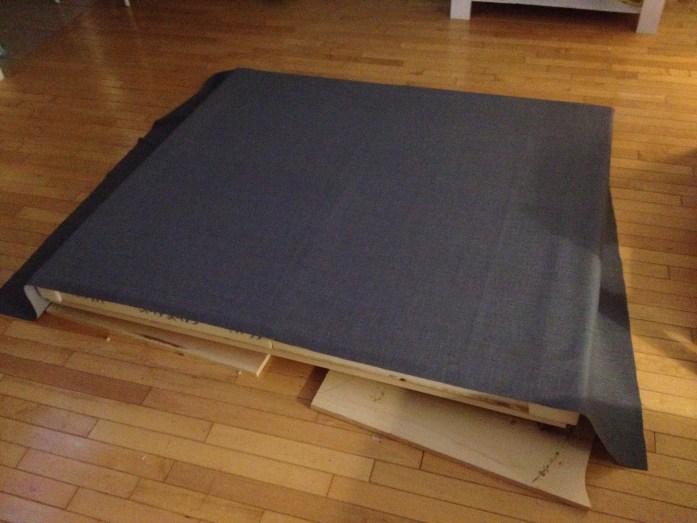 (Confession time: We actually had to purchase a second piece of fabric because the first piece wasn’t quite wide enough to wrap around the massive squares of foam. There may or may not have been a tired late-night adult tantrum.)