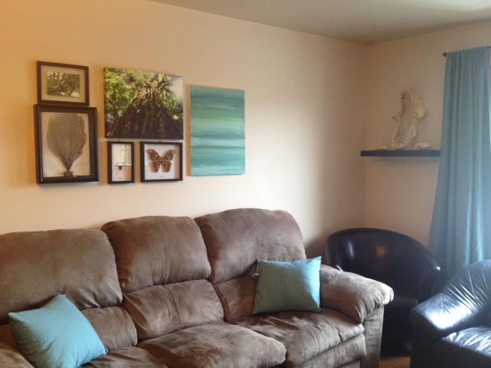 … with a gallery wall (including an abstract painting I did).