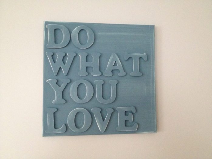 On the wall in my home office: “Being an artist is like being yourself for a living.” On the wall in the kitchen: “Donut worry, be happy.” Even the powder room has several prints with phrases, like my favourite “We used to want it all. Now we just want to pee alone.”