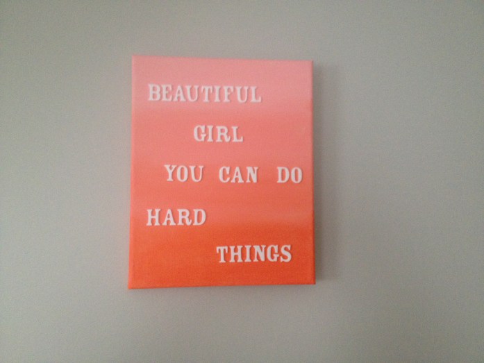 They had adhesive backs so they stuck easily to the canvas — which I’d painted with a coral ombre effect — and it ended up being a nice gift for my sister’s new apartment.
