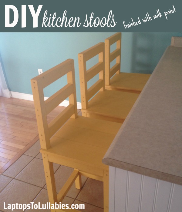 Of course, that just gave us a great excuse to make even better ones. The original stools were short, round, backless and completely dull. It took me all of three minutes online to snag free printable plans for extra-tall farmhouse-style barstools from Ana White (author of The Handbuilt Home).