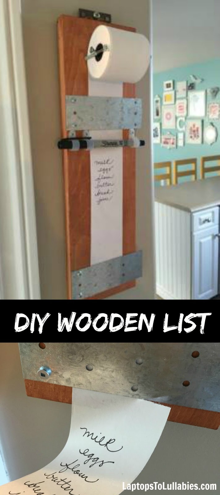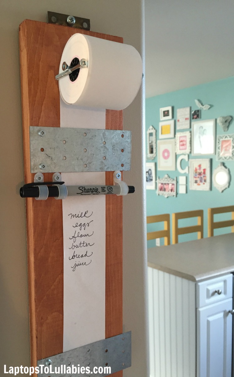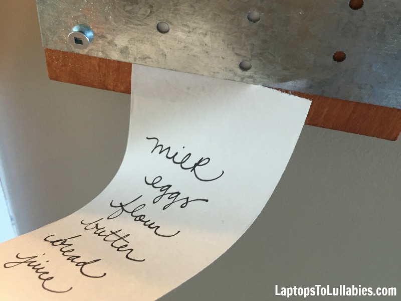 I’d had this project on my to-make list for ages because the concept was so simple. A tiny roll of paper on a scrap of wood, creating a convenient spot to jot down grocery lists or to-do lists and then rip them off for taking along with you.