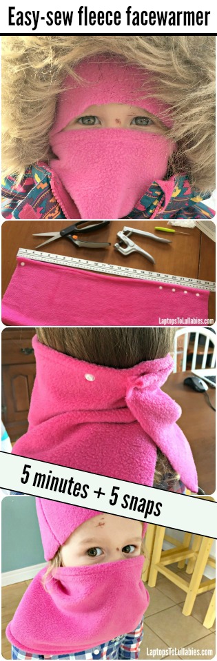 compulsively early — I decided I needed to make facewarmers for me and the kids. Something scarf-like but that would easily open if one of us happened to find a set of monkey bars on the walk to the bus.