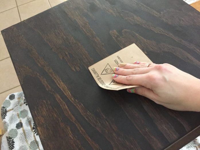 I applied three coats of polyurethane, sanding lightly between coats, and it was one of my nicest staining jobs to date (usually I get slack about the poly).