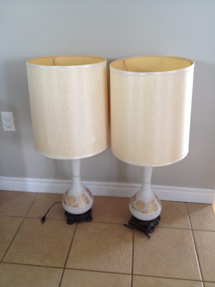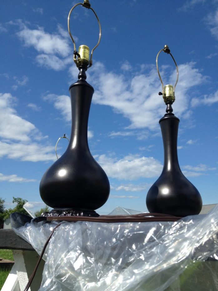 When I came across a matching set of (ugly, patterned) lamps at a yard sale for $10 over the summer, I decided we had to figure something out. I was going to be a real grown-up with two real nightstands and matching lamps, one way or another.