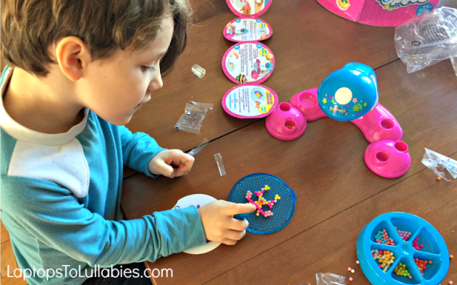 (Also there are kid-friendly tweezers that make it easier for chubby little fingers to pick up the beads and get them in the right spot.)