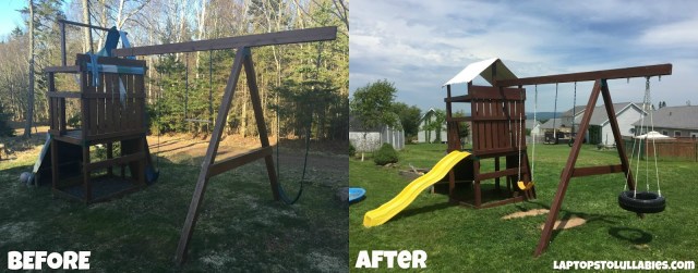 We took it apart, lugged it up the street in a borrowed truck, and put it back together again. The kids were overjoyed but I knew it needed a bit of freshening in order to really look great in the yard.