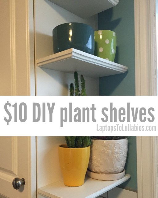 After some extended begging and pleading, I convinced my handy husband that adding some small shelves around the window was a good idea. No, it would not ruin the resale value. No, it would not be “weird” to have shelves jutting out of the sides of the cabinets. (He is always wary of my suggestions because he does not share my imagination.)