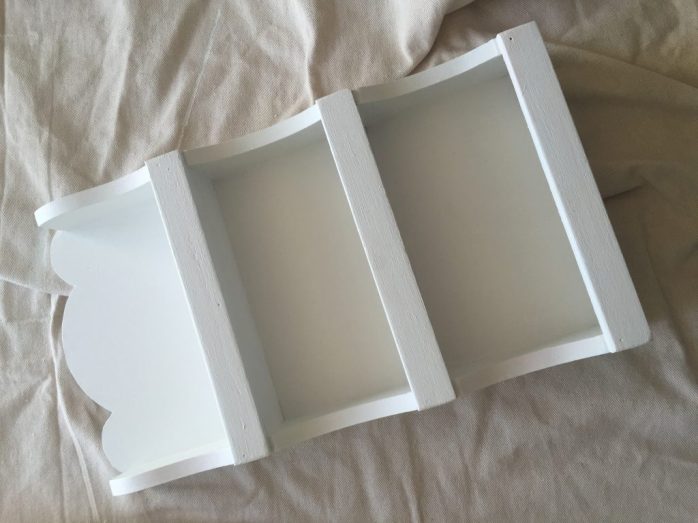After two coats of creamy white paint (Fusion Mineral Paint in Casement), the shelf was looking a heck of a lot nicer.