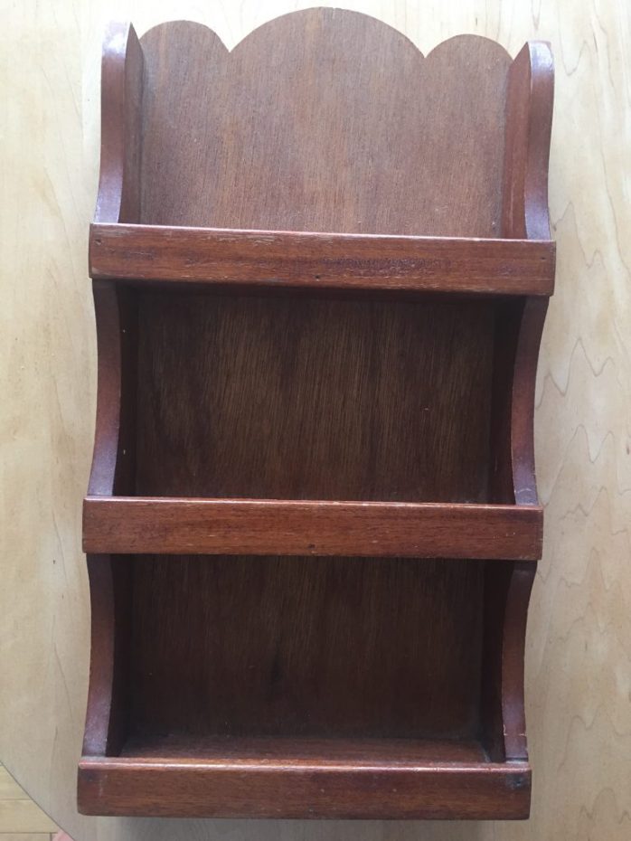 This project started when I picked up a small wooden shelf for $2 at my favourite local thrift store (New To You, for Truro readers). It was probably designed to hold tchotchkes (which make me shudder), but I knew it would be the perfect key rack for our entryway.