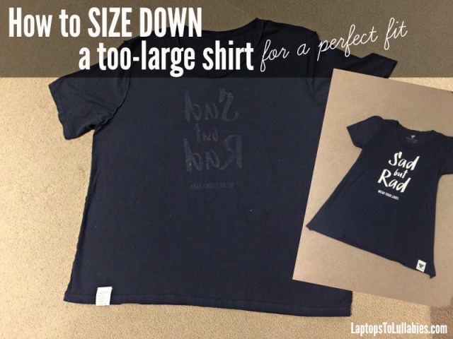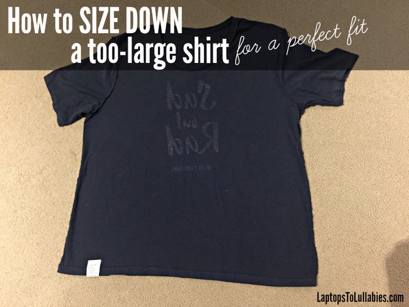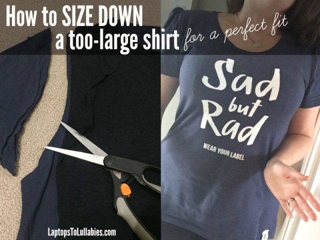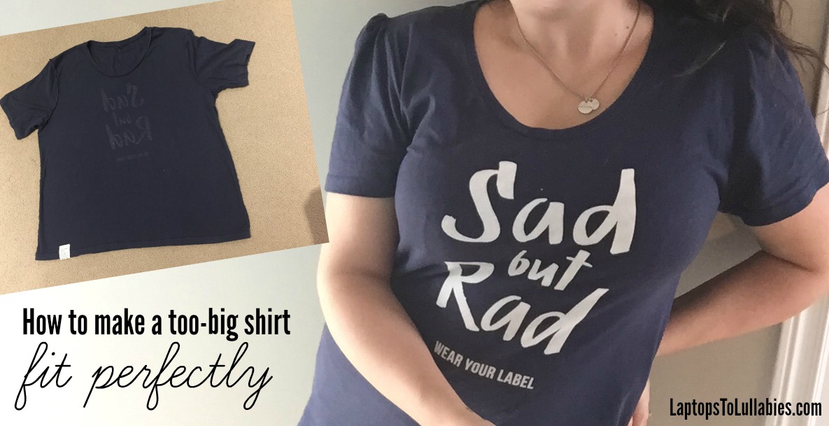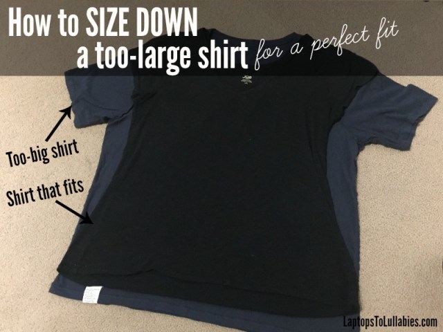 Take a shirt you like (for me, it was a comfy flared tee from Joe Fresh) and lay it on top of the too-big shirt (which should be turned inside-out.