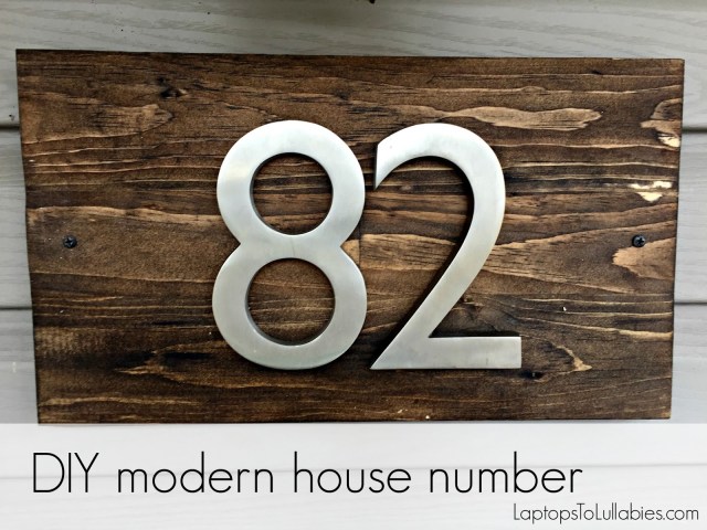 I was cruising Pinterest one day looking for front porch inspiration and I saw a house number plaque so beautiful it stopped me mid-scroll. It was a set of modern, brushed nickel numbers attached to a background of stained wood. Completely simple and yet totally perfect.
