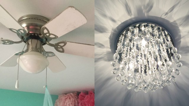 When we decided to embark on fairly major room makeovers for each of our children — including a loft bed for one and bunks for the other — we knew her ceiling fan had to go. Elevated bed + spinning blades + curious child was just a recipe for decapitation.