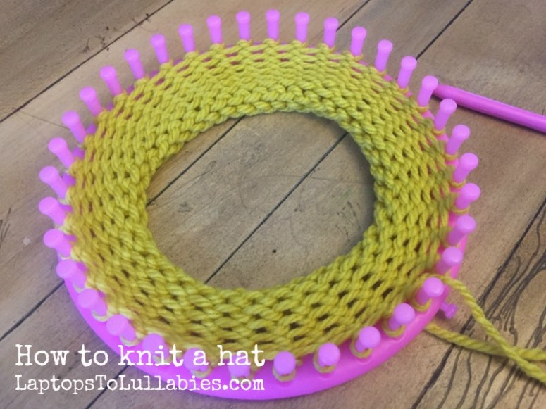As you continue to wrap pegs and lift loops, you’ll see a little yarn circle inside the loom growing bigger and bigger. It really does look like the beginnings of a hat.