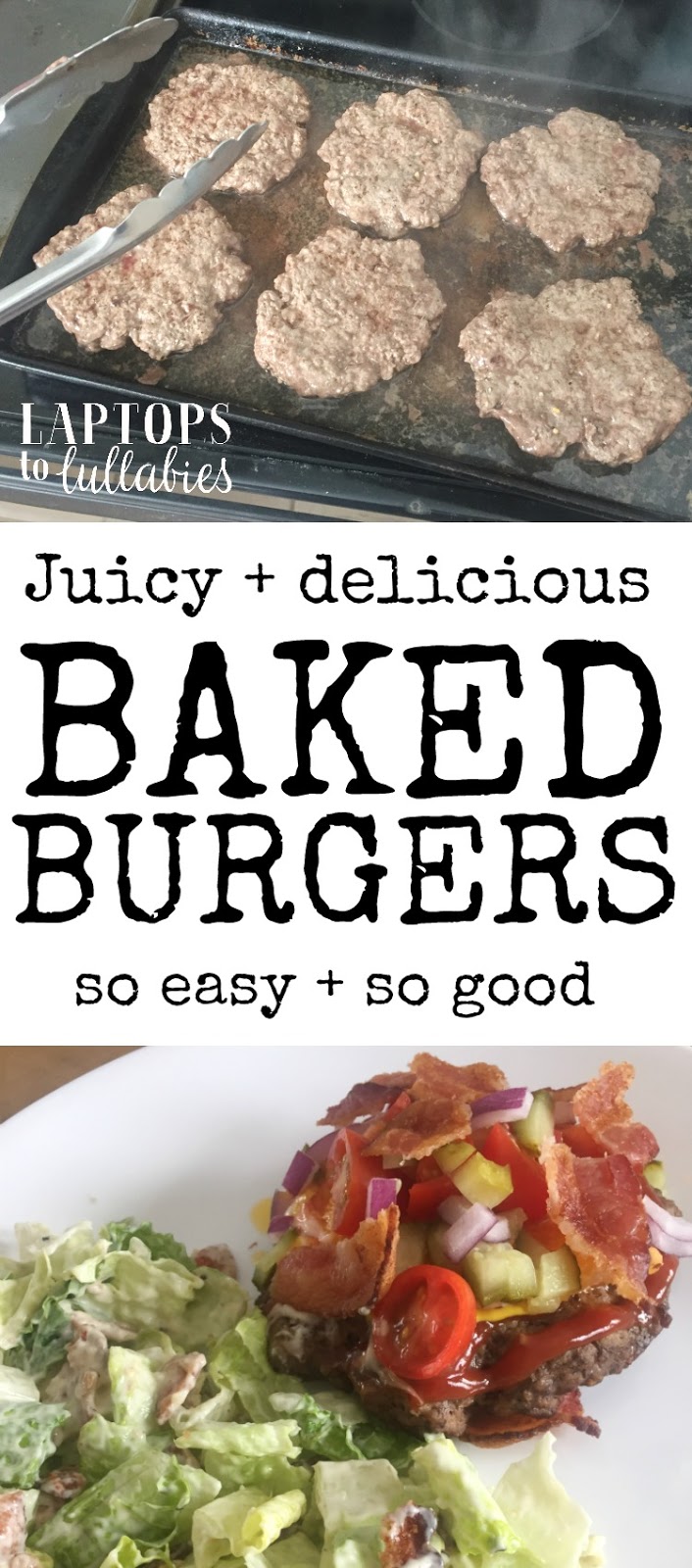 I do, however, bake meatballs in the oven. So last week I decided to Google “baked hamburgers” to see if it was a thing, and it was! Apparently baked hamburgers are actually juicier because the heat is distributed more evenly.