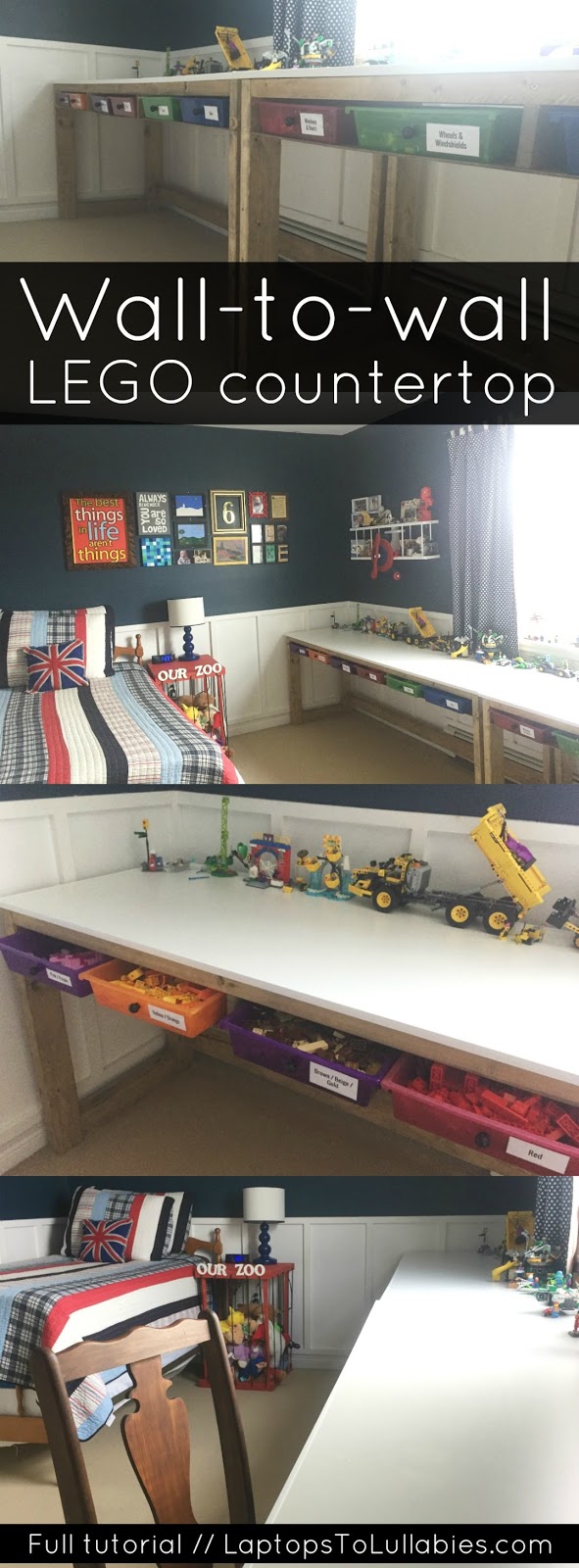 … and then later upgrading to our huge Lego countertops with storage drawers, as the collection grew.