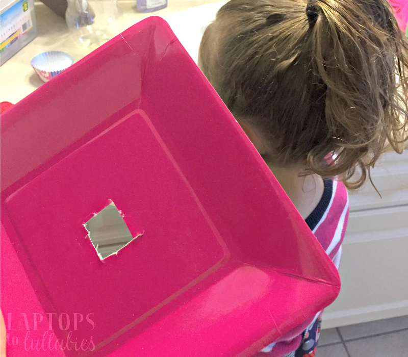 3. Slip the ponytail through the hole in the plate, and then cut another hole in the middle of a cupcake liner.