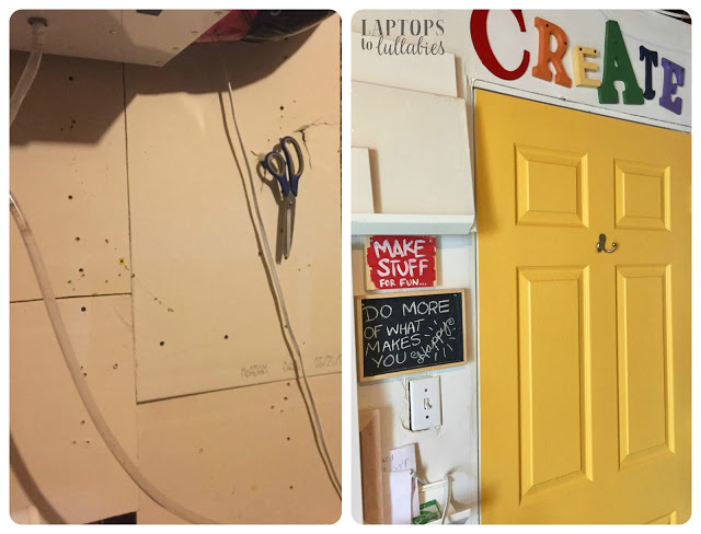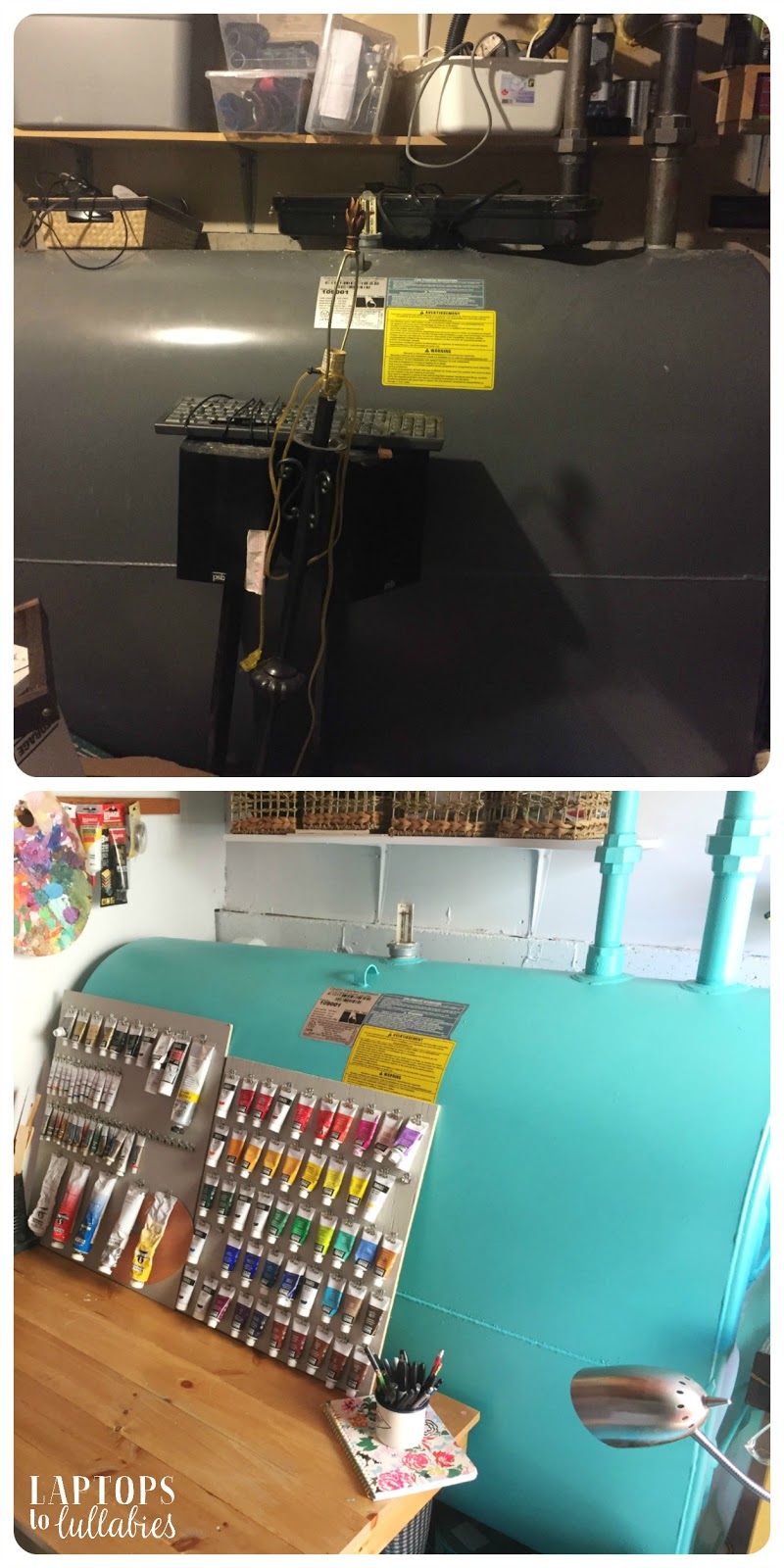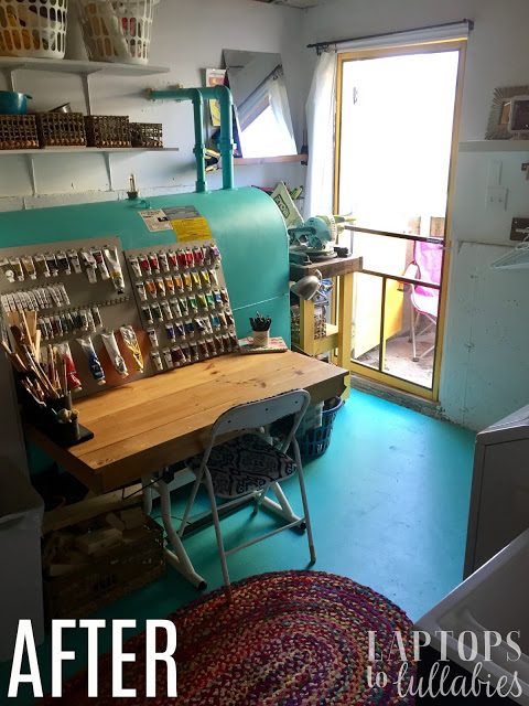 So over the past few months, I’ve been picking away at the room — little by little — to transform it from a disgusting utility room to a fresh laundry room/DIY studio.
