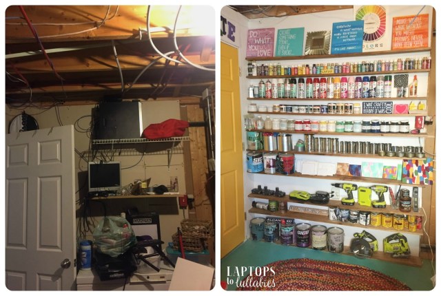 After getting my own power tools for my birthday last summer, I’d been doing all of my woodworking and DIYing in the kids’ carpeted playroom. Not ideal. There was always sawdust everywhere, and I was getting tired of snipping paint drips out of the carpet — even when I used a dropcloth!