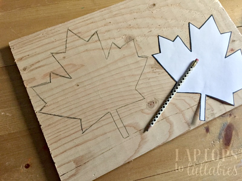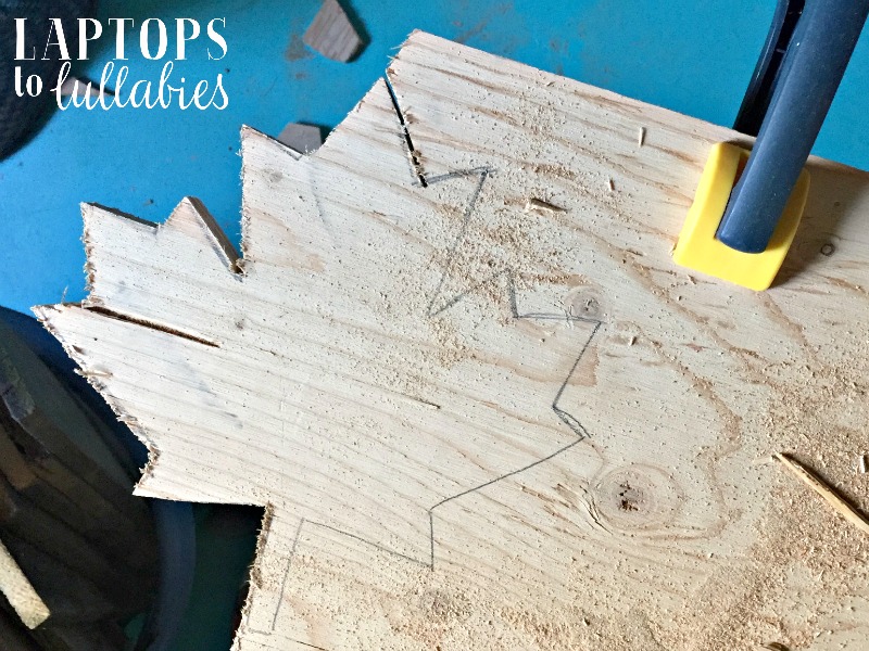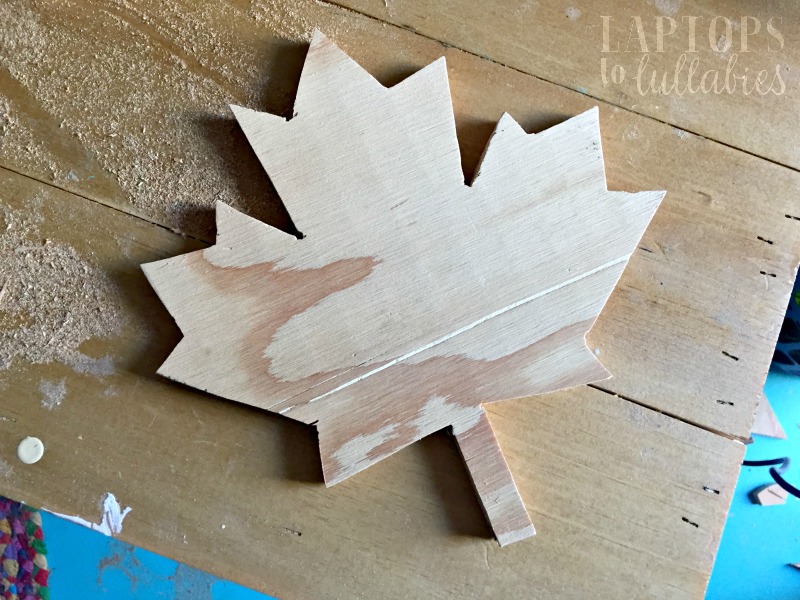Once I’d printed out a maple leaf (just the outline to save on that toner $$$) and traced it onto a scrap of plywood, it actually was very quick to cut out.