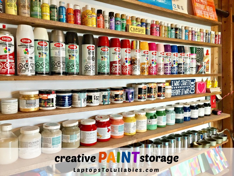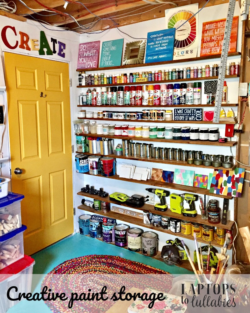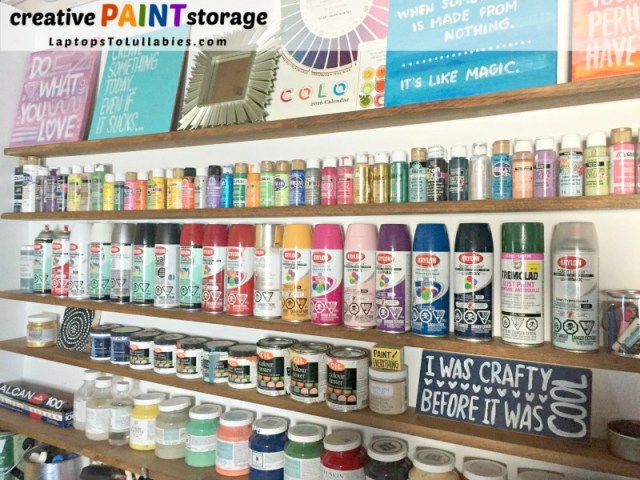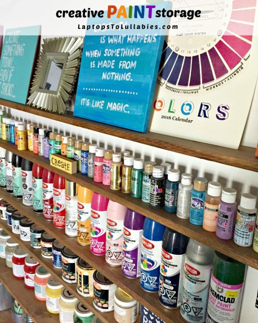 - a shelf for acrylic bottles — which I only really use in projects with the kids because they’re cheap