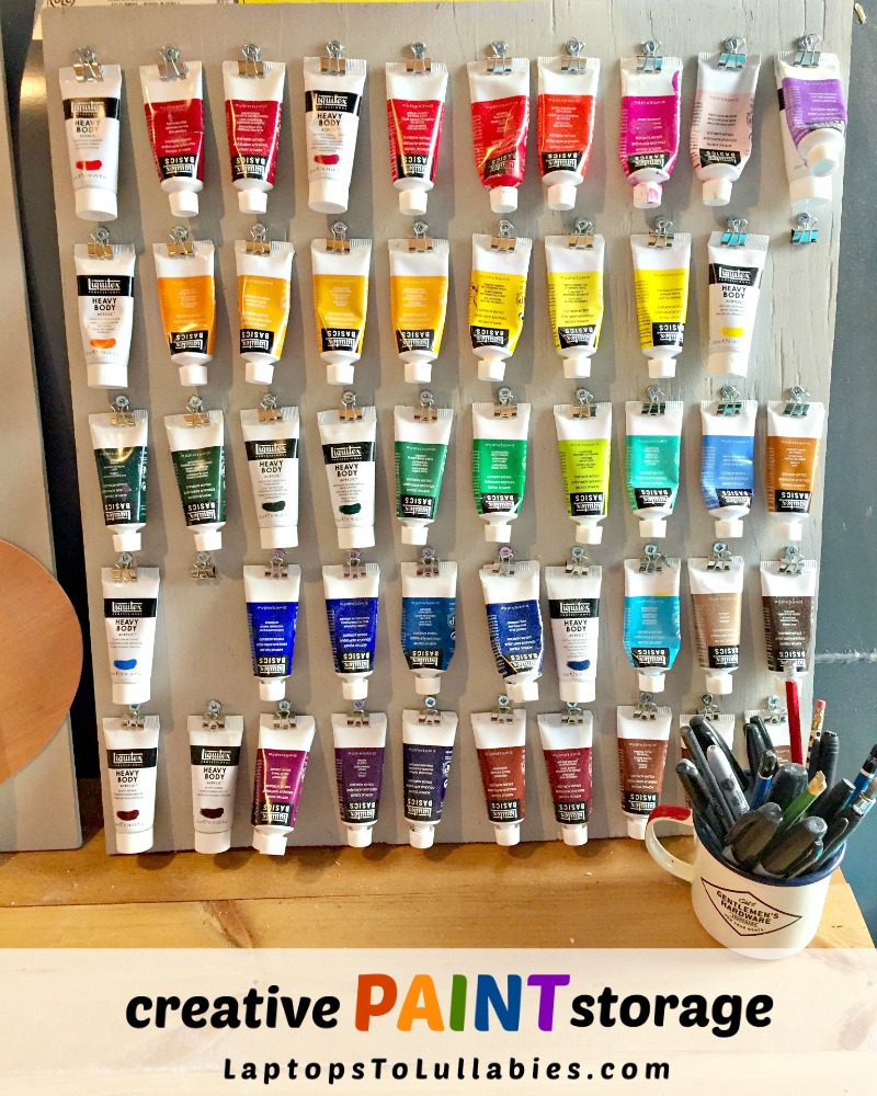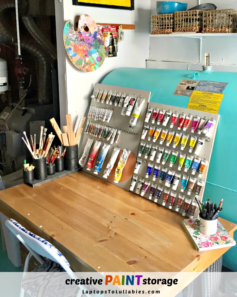 My paint brushes used to be stored in the closet under the basement stairs, and now I have them right where I can see them.