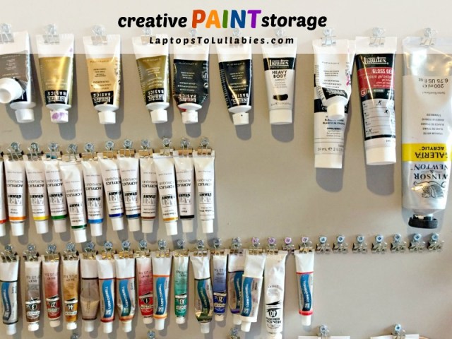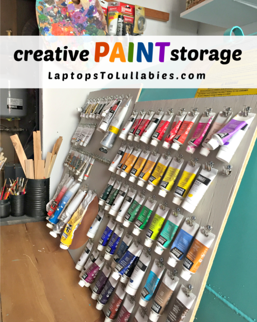 The very top shelf is for displaying canvases, but it can hold more paint if I need the room down the road.