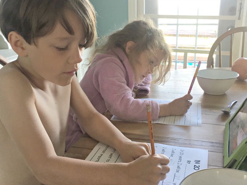 “When you wake up in the morning, no iPad or TV — or any screens,” I added. “Instead, you’re going to read one long book (or two short books) to your sister and then we’re going to do some writing or spelling or math together. Fun, right?”