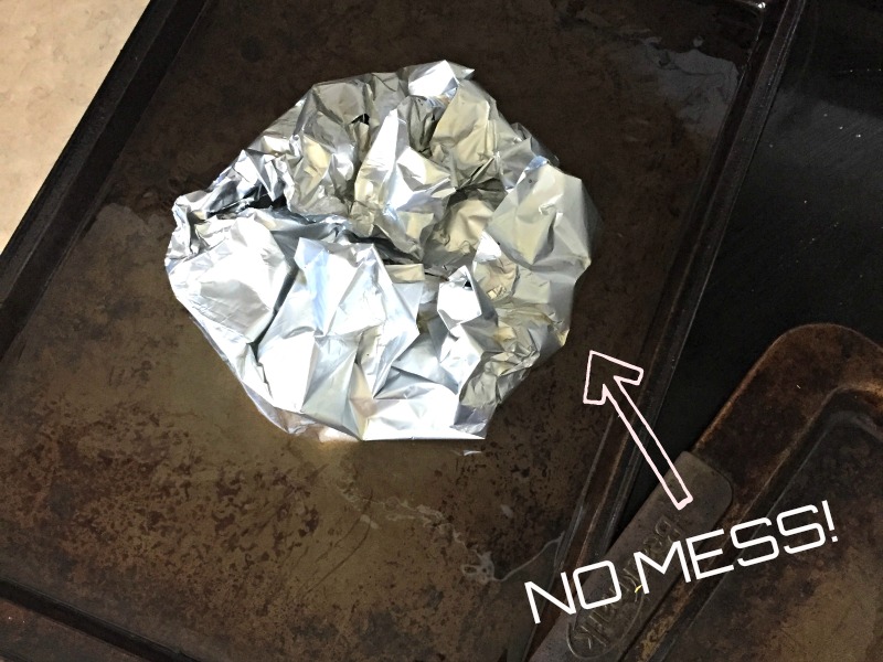 Once the pans cool, you can ball up that tinfoil and throw it straight into the garbage — and then put the cookie sheets back in the cupboard.