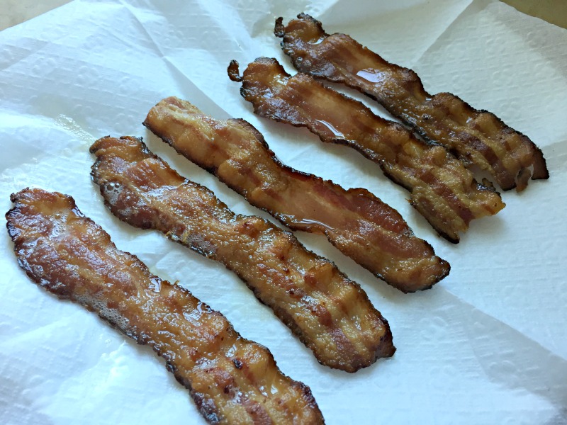 1. Stove-top bacon often needs to be cut in half so it fits in your pan.