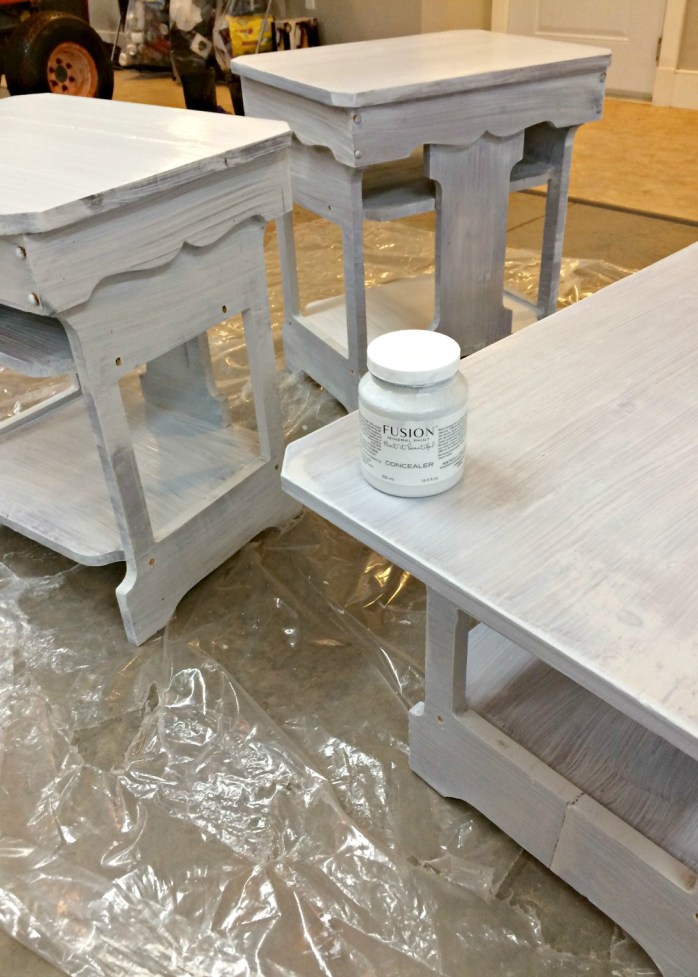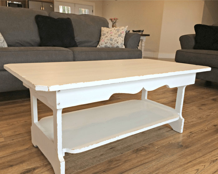 My friend mentioned she wanted to paint her coffee table and end tables, and I jumped in with ‘helpful’ suggestions. She’d been given the hand-me-down tables and wanted to use them in her new living room, and I wholeheartedly agreed. The tables were solid and incredibly well-built. I love heavy wooden pieces that can last forever, because you can just keep repainting them as the mood strikes.