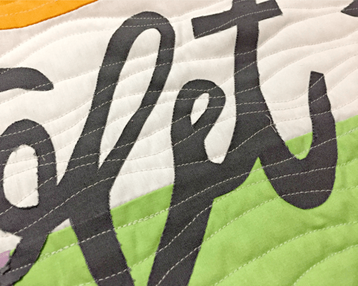 There was no WAY I wanted to carefully stitch all the way around Violet’s name — it would have taken hours — so I just ran right over it with my swoopy lines, making sure to “catch” all of the important parts so they were securely stitched.