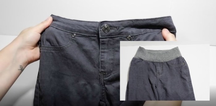 I also shared a fun little video over on Facebook where I redid a pair of thrift shop pants for D — turning the too-big button-and-zipper waist into a stretchy, comfy waistband that will fit him much longer …
