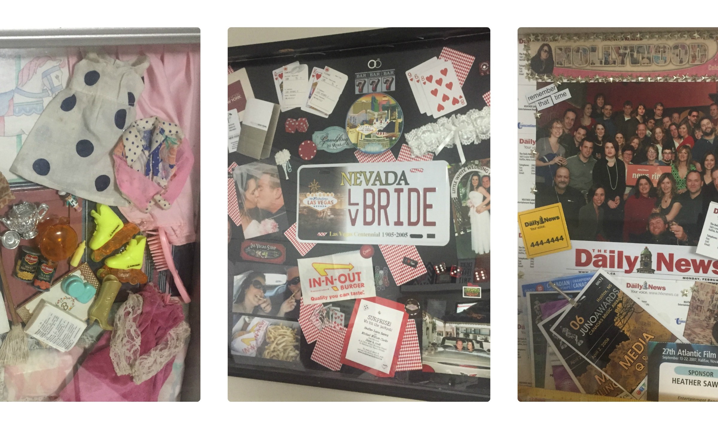 It took me a long time to find the solution: shadow boxes. These deep frames force you to pare down your mementos and only keep the very best ones, and then you get to smile at them every day as they hang on your wall.