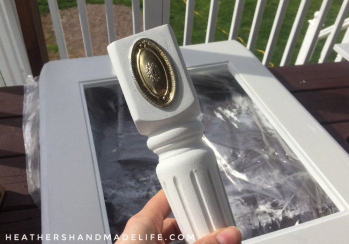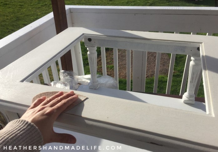 Confession time! I must admit to caving the next day and adding a quick coat of my beloved Fusion Mineral Paint — just on the legs and bottom shelf — to even things out. “Casement” was a good enough match to “Farmhouse White,” and the whole thing looked much better after a bit of distressing, too.