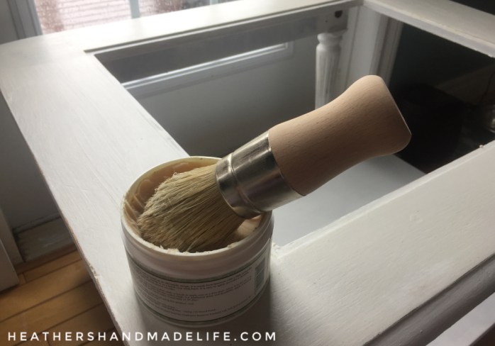 After I sanded everything lightly, I brought out a type of paint I haven’t used in a while: Miss Mustard Seed’s Milk Paint. *dramatic clash of symbols*
