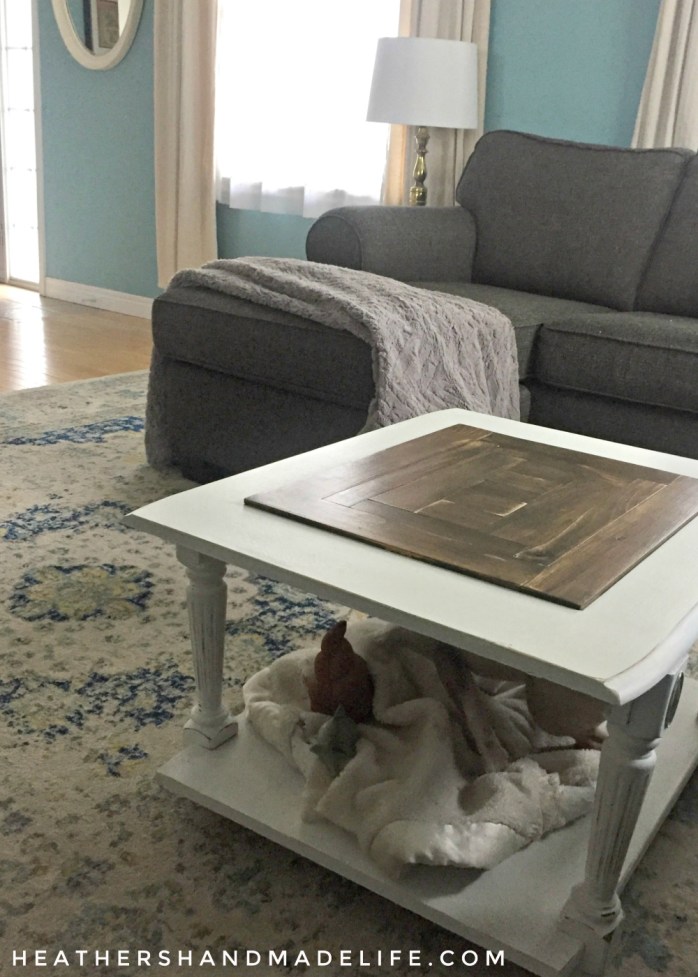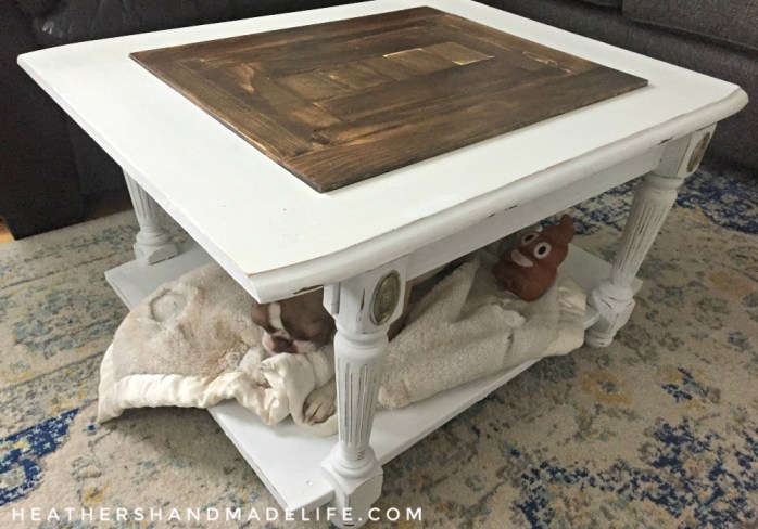 It may have taken years, but we finally have a coffee table again! It looks nothing like the hunk of junk I snagged from somebody’s curb, it matches everything in our living room, and it was a great husband-and-wife collaboration (with minimal squabbling and only one injury).