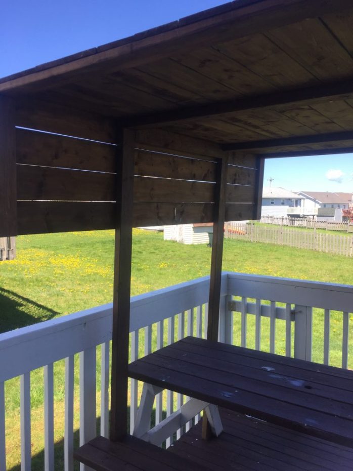 I’m considering adding more fence boards — or maybe outdoor curtains — to give me a teeny bit more shade, but overall I’m very happy with my new “vampire perch.”