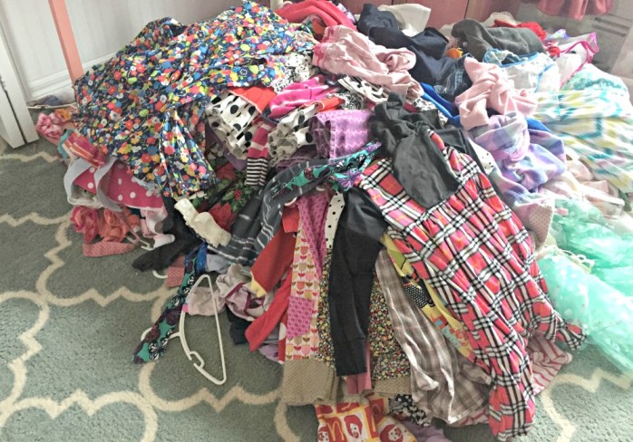 Cleaning C’s closet. (Well, that was me alone. I wouldn’t let her in because I was smuggling stuff out in black garbage bags.)
