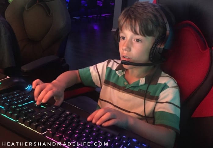 We ate popcorn as we played. I got especially sweaty during an enthusiastic Wii Boxing match with one guest. Three of the kids fell in love with the dark room filled with PCs — complete with light-up rainbow keyboards and fancy headsets — and declared they were never playing anything else. I couldn’t stop taking pictures of these adorable little eight-year-olds looking like itsy bitsy baby hackers.