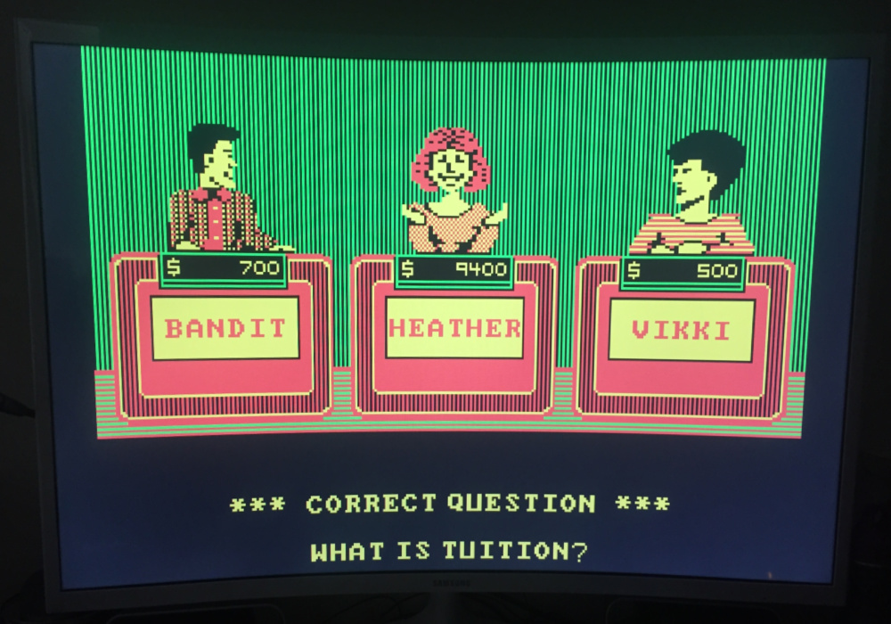 Poor Vikki was very patient to play Jeopardy with me when she babysat. I played this damn game so much that I memorized a lot of the answers — back then, games didn’t have the capacity to store many options I guess — and that couldn’t have been fun. Thank you, Vikki!