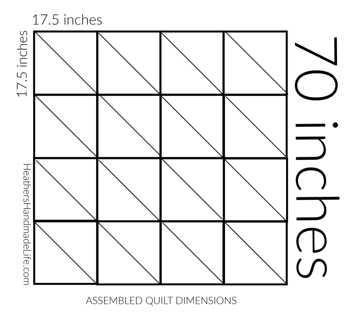 Thank you, Leslie! That’s wonderful that your preteen will be making her own quilt! When I made the half-square triangles, I trimmed them down and they measured about 18.5″ — so the finished quilt shows them as 17.5″ after the seam allowances.