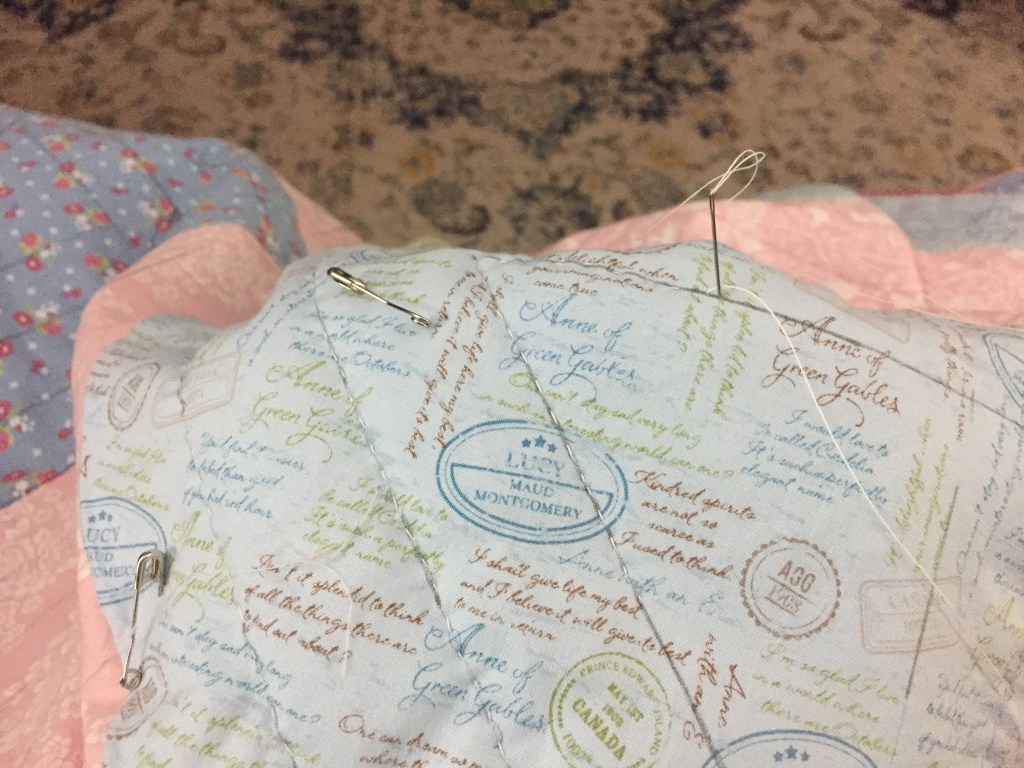 The Anne of Green Gables quilt is perfect in our guest room. The colours are light and cheerful, and it goes perfectly with the pastel-painted furniture and light greige walls. I even had enough scraps left over to make a tiny accent pillow! I think Anne would have approved.