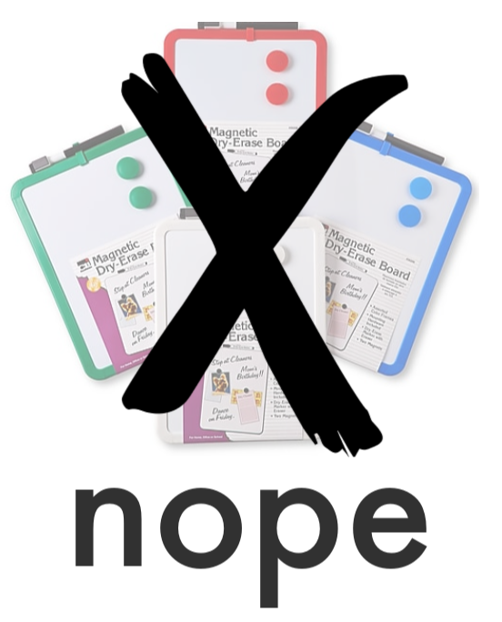 I didn’t want a bulletin board — tried it, now use it elsewhere for the kids’ school stuff. I didn’t want a white dry-erase board — they tend to look messy and ugly because the marker never fully wipes away. I also refused to buy one of the magnetic memo boards from the office supply store — they were stark, bland and overpriced.