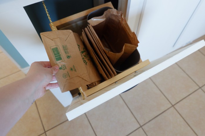 The compost pull-out is specially designed to hold a small bag — no need for massive