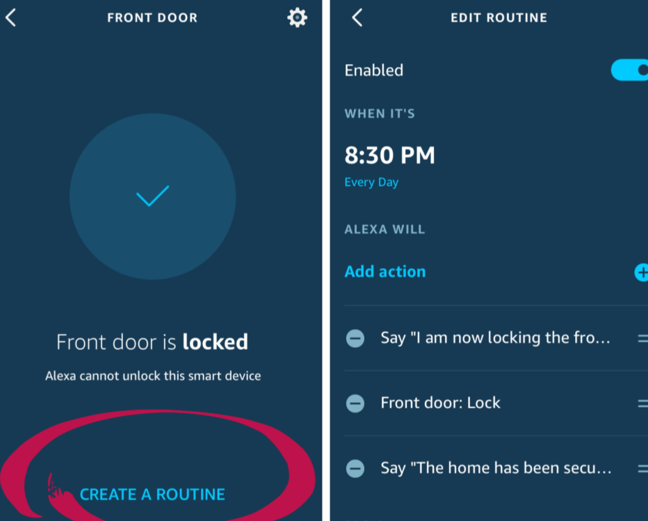 I think it’s fun when the door automatically locks at a certain point in the day, along with Alexa spouting a witty little message about the security of our home.